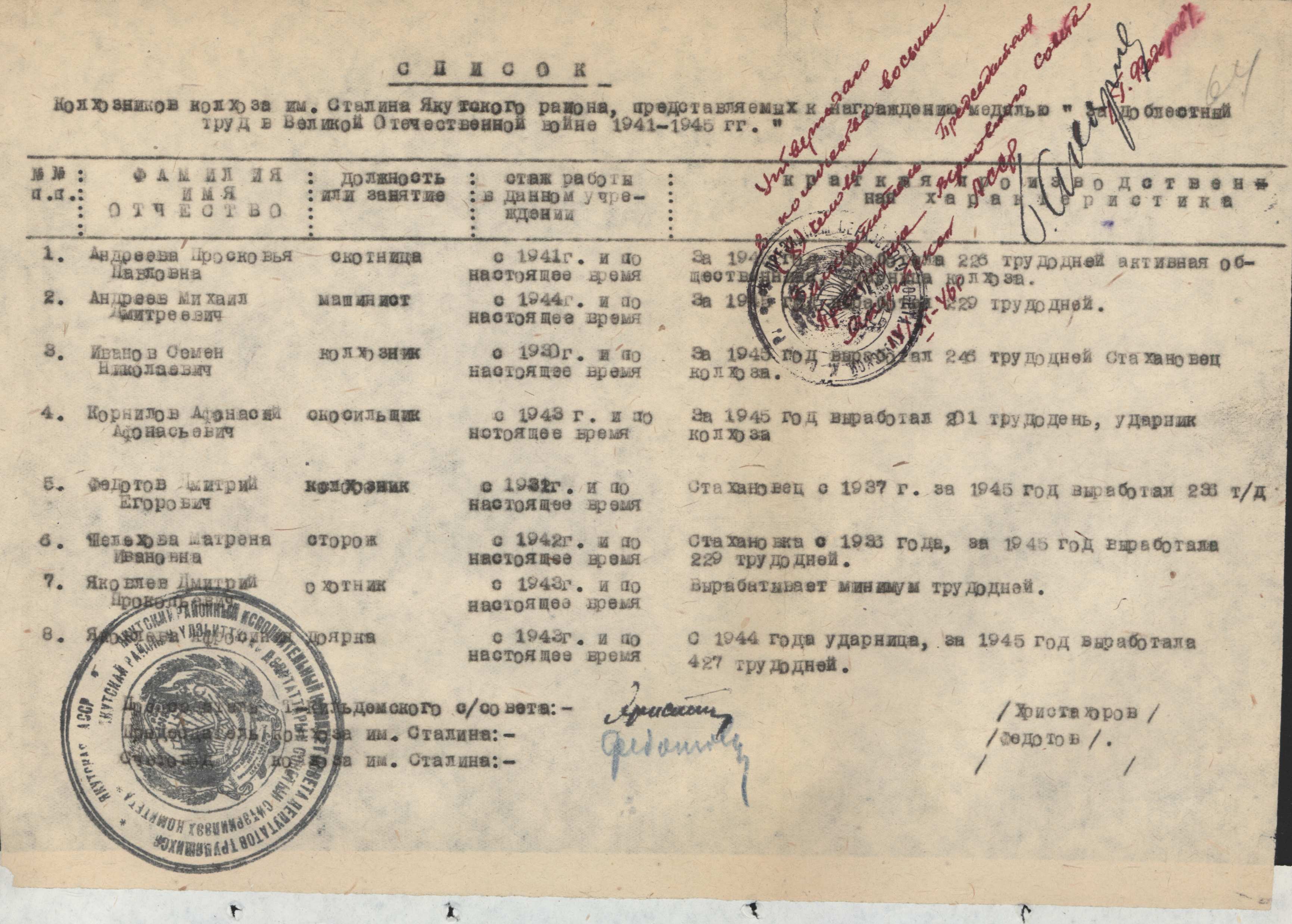 Источник: Национальный архив РС (Я). Ф.50. Оп.60. Д.61. Л. 64