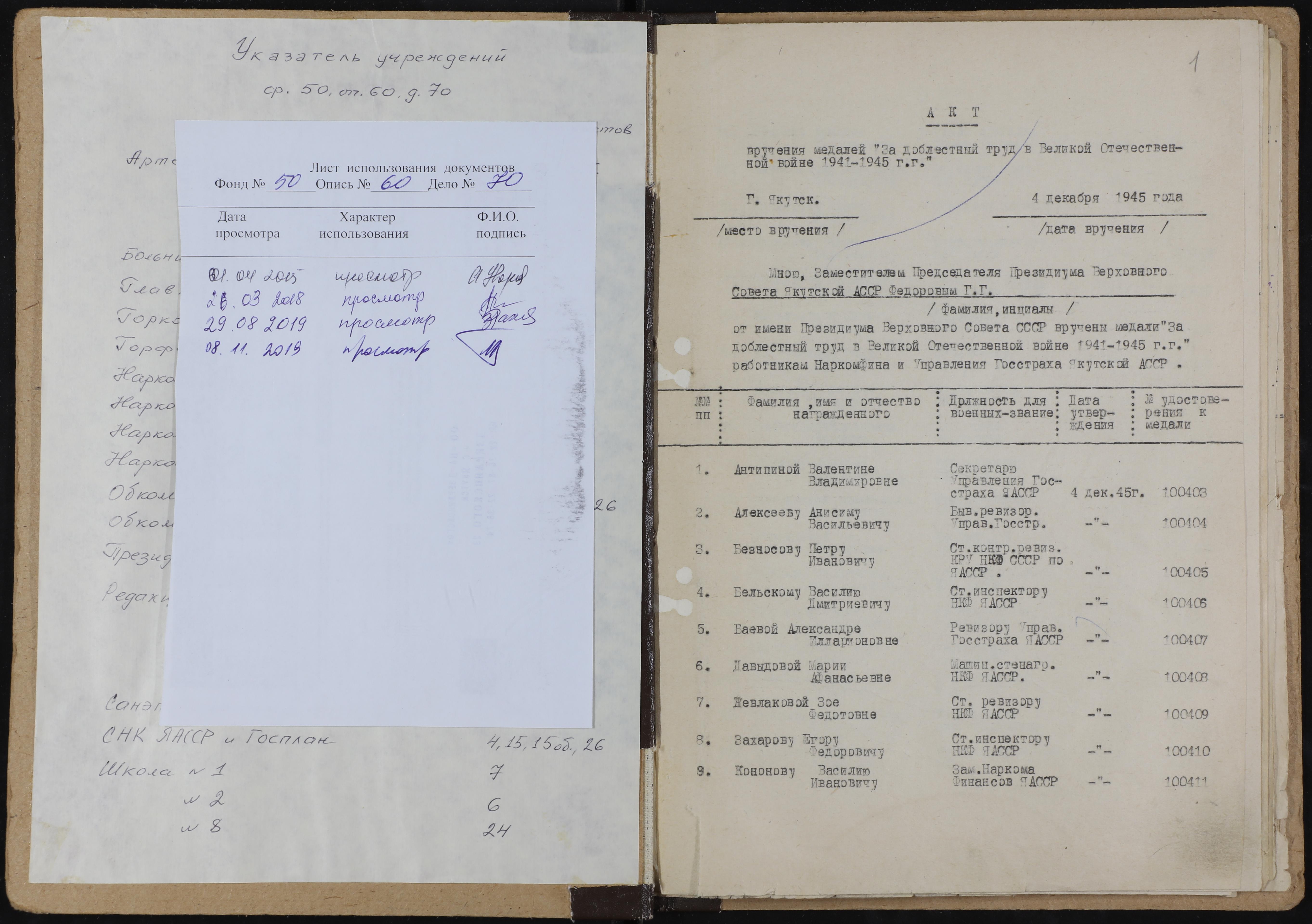 Источник: Национальный архив РС (Я). Ф.50. Оп.60. Д.70. Л. 1
