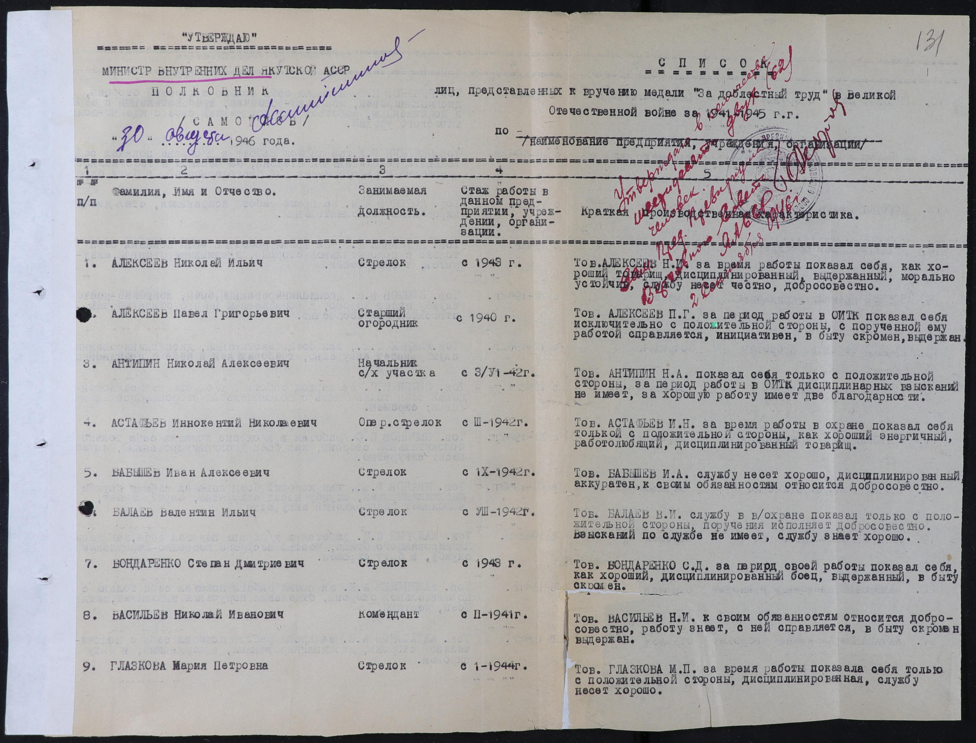 Источник: Национальный архив РС (Я). Ф.50. Оп.60. Д.75. Л. 131