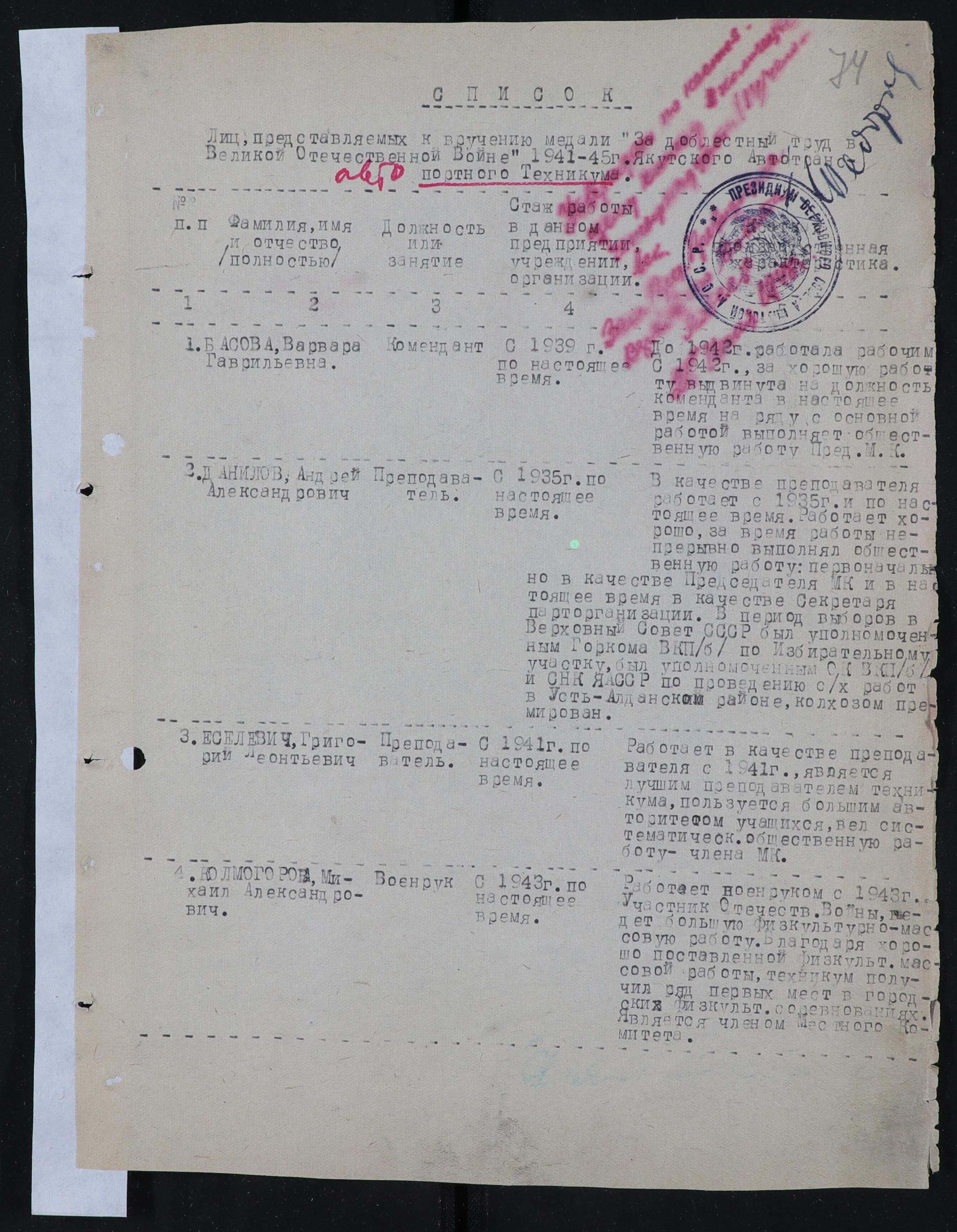 Источник: Национальный архив РС (Я). Ф.50. Оп.60. Д.76. Л. 74
