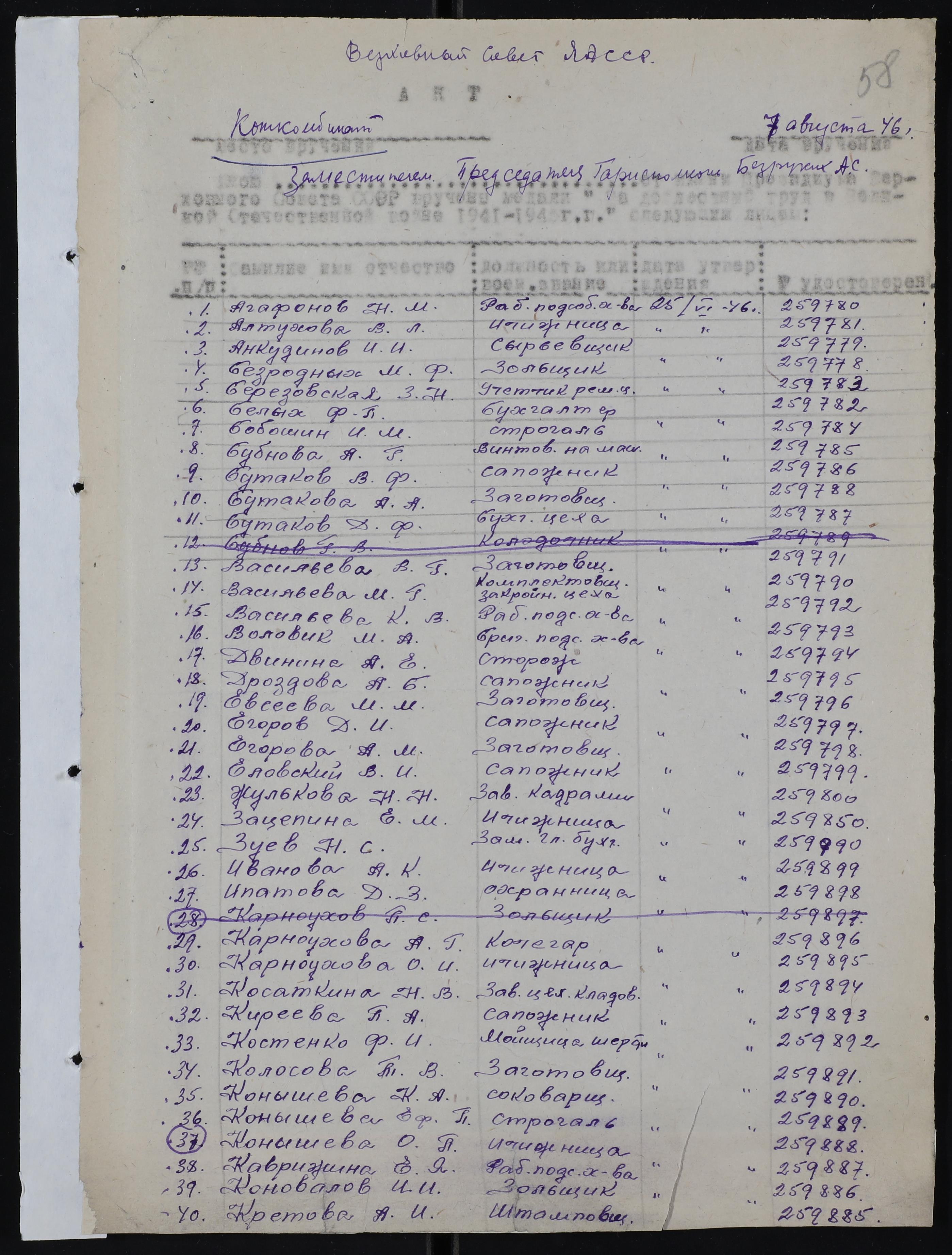 Источник: Национальный архив РС (Я). Ф.50. Оп.60. Д.71. Л.58