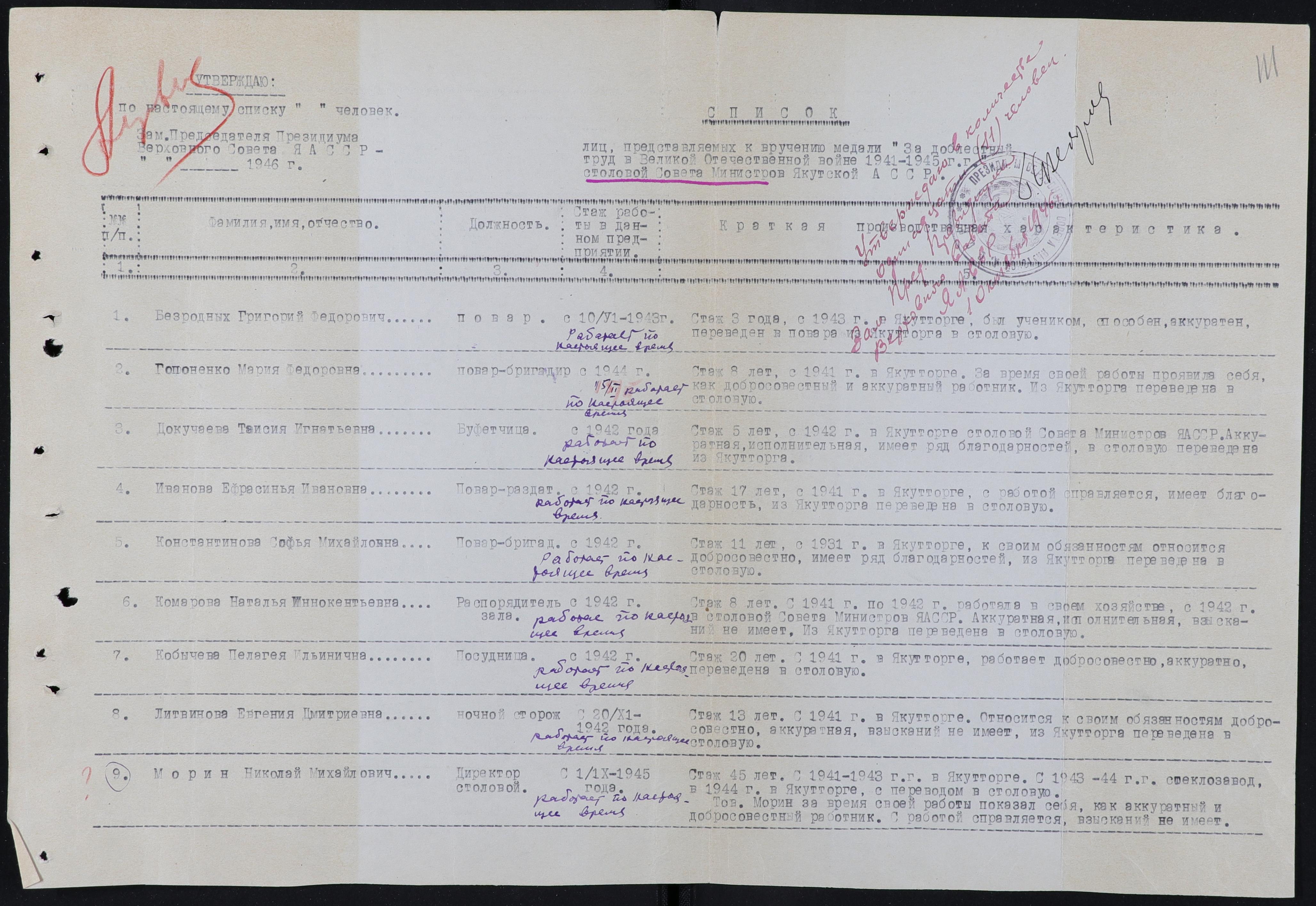Источник: Национальный архив РС (Я). Ф.50. Оп.60. Д.75. Л. 111