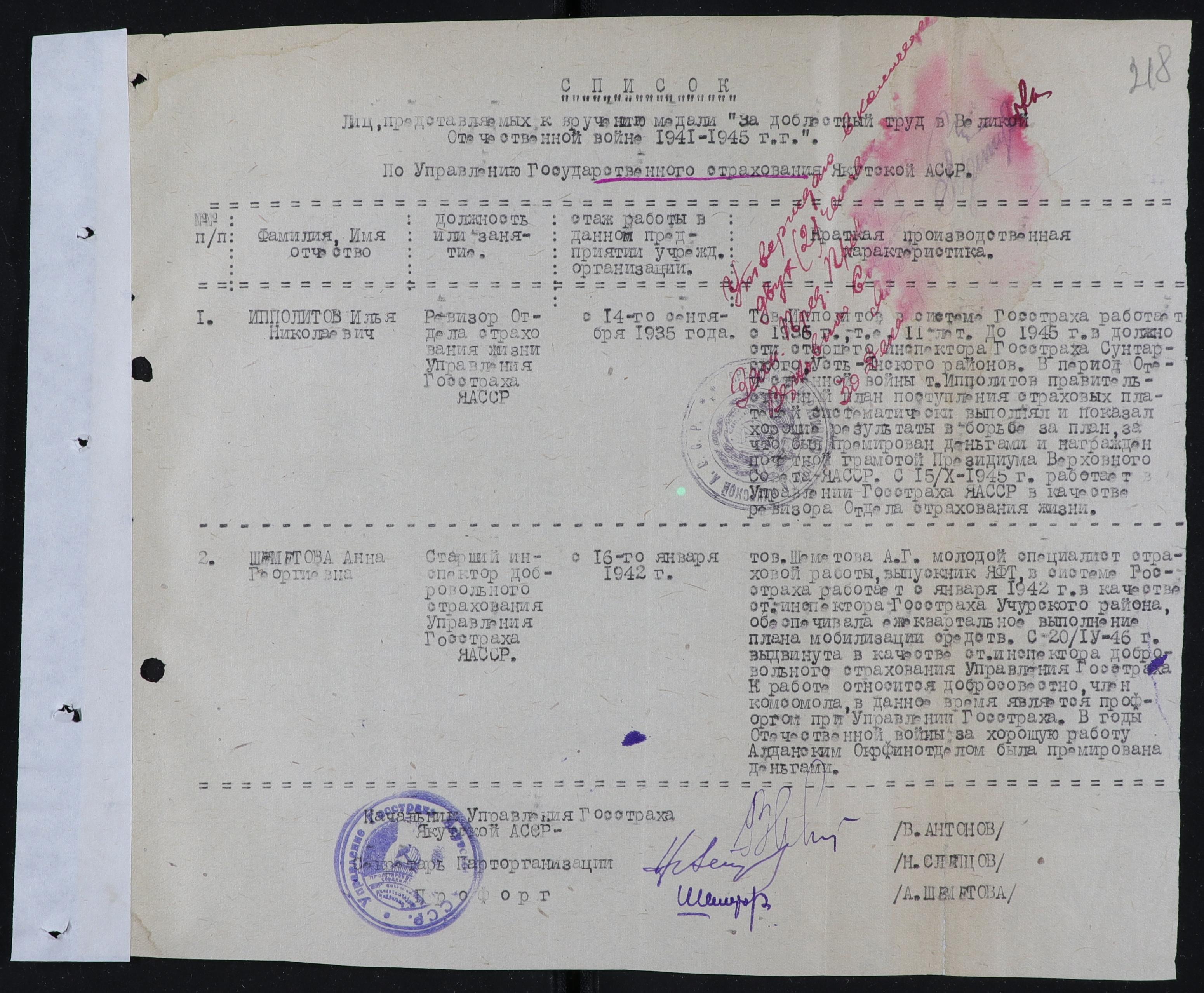 Источник: Национальный архив РС (Я). Ф.50. Оп.60. Д.76. Л. 218