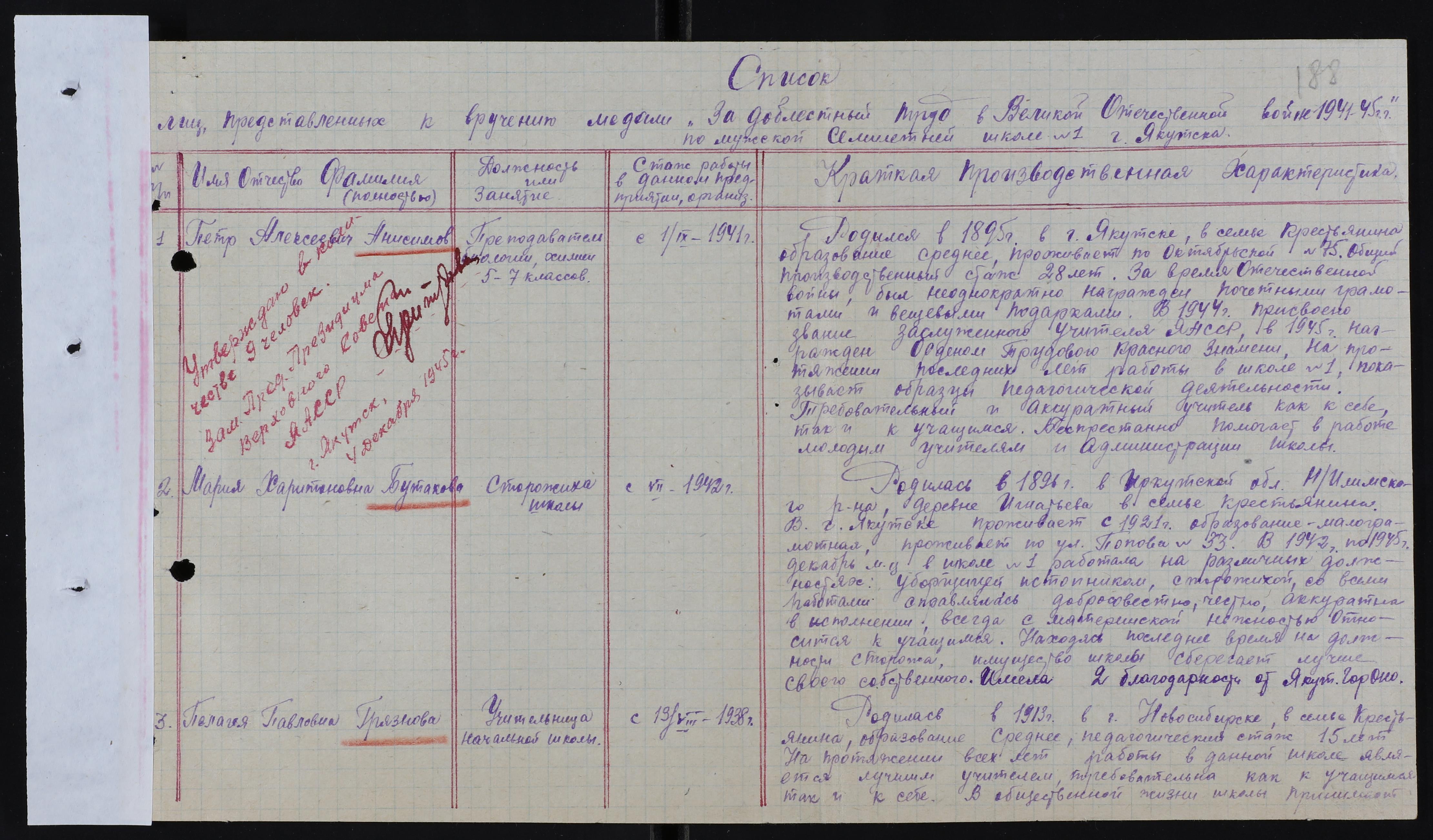 Источник: Национальный архив РС (Я). Ф.50. Оп.60. Д.74. Л. 188