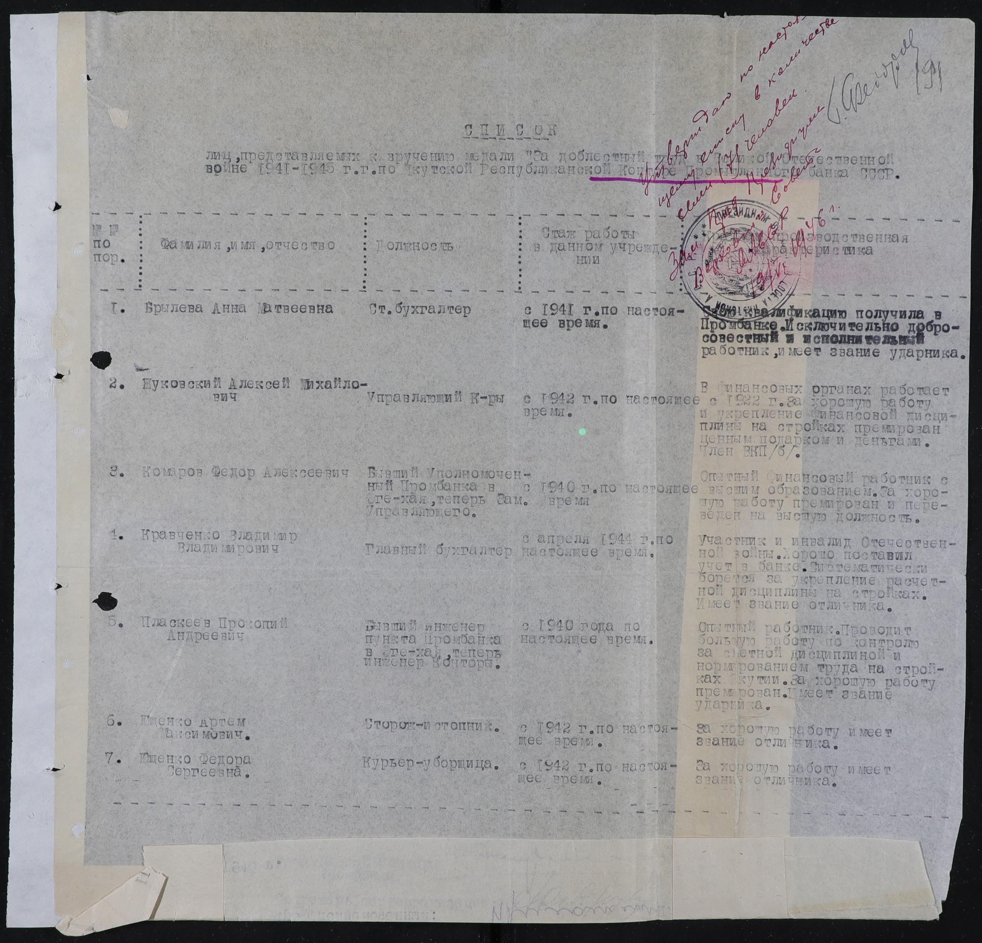 Источник: Национальный архив РС (Я). Ф.50. Оп.60. Д.76. Л. 191