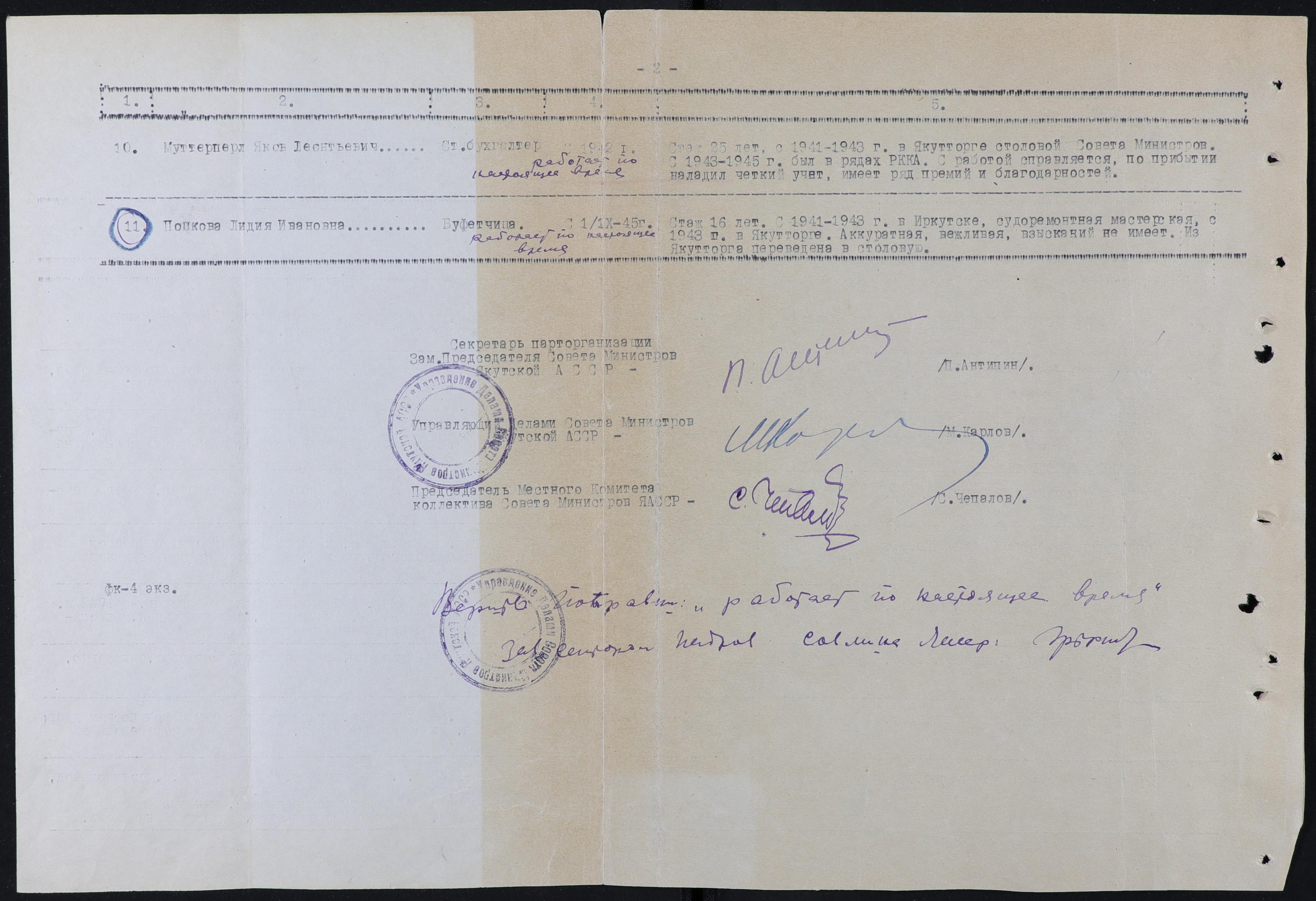 Источник: Национальный архив РС (Я). Ф.50. Оп.60. Д.75. Л. 111