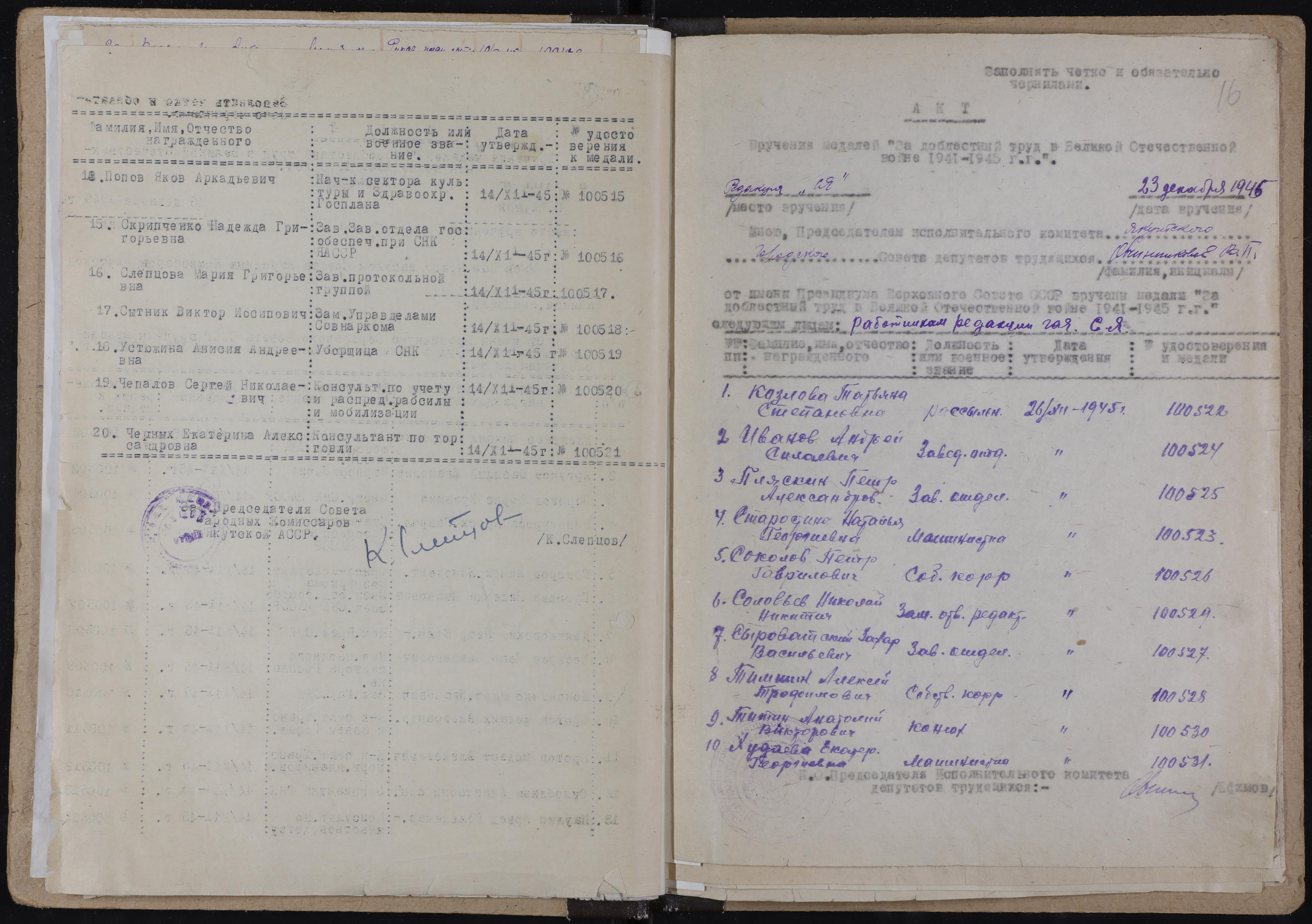Место работы: Совет народных комиссаров ЯАССР