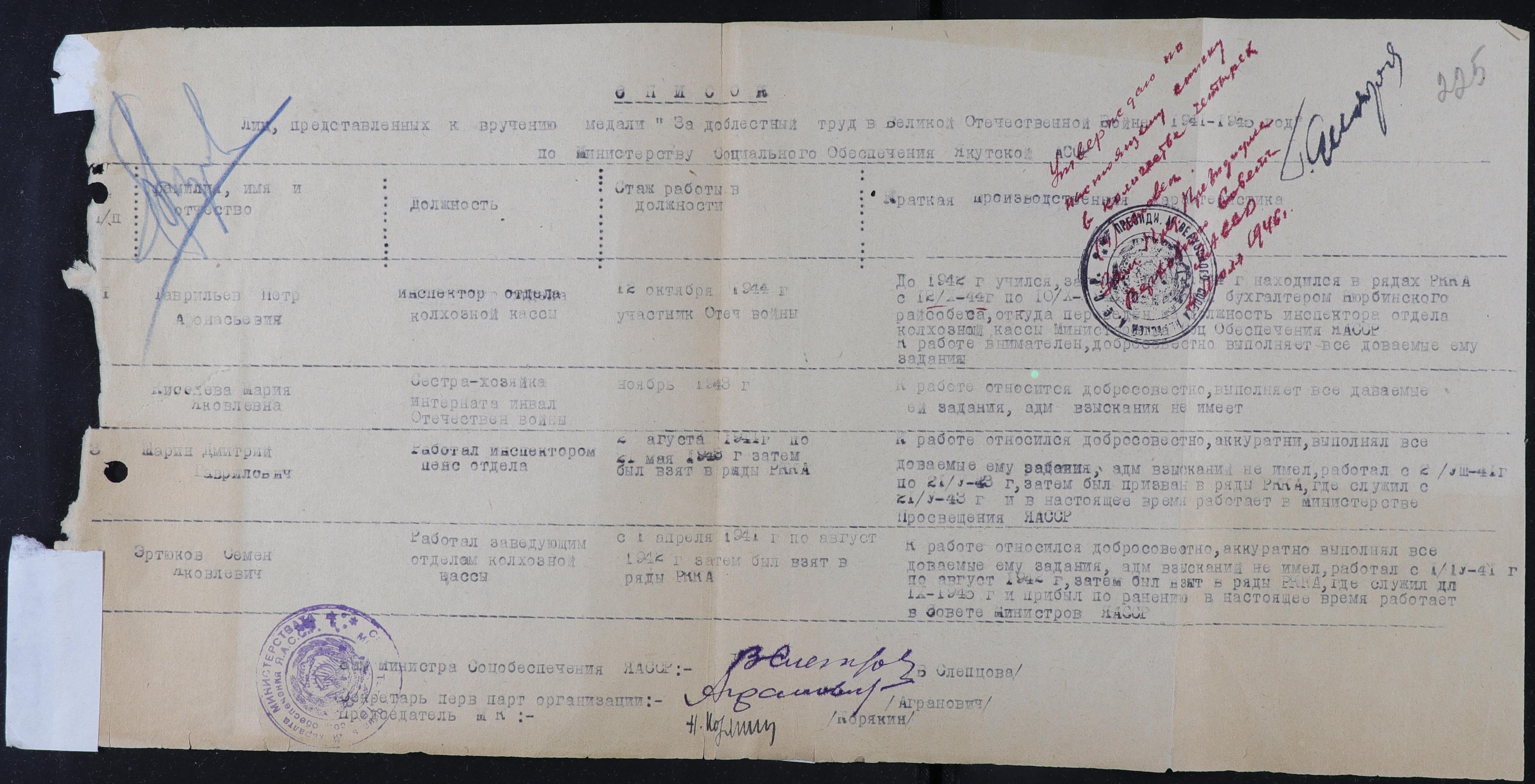 Источник: Национальный архив РС (Я). Ф.50. Оп.60. Д.77. Л. 225