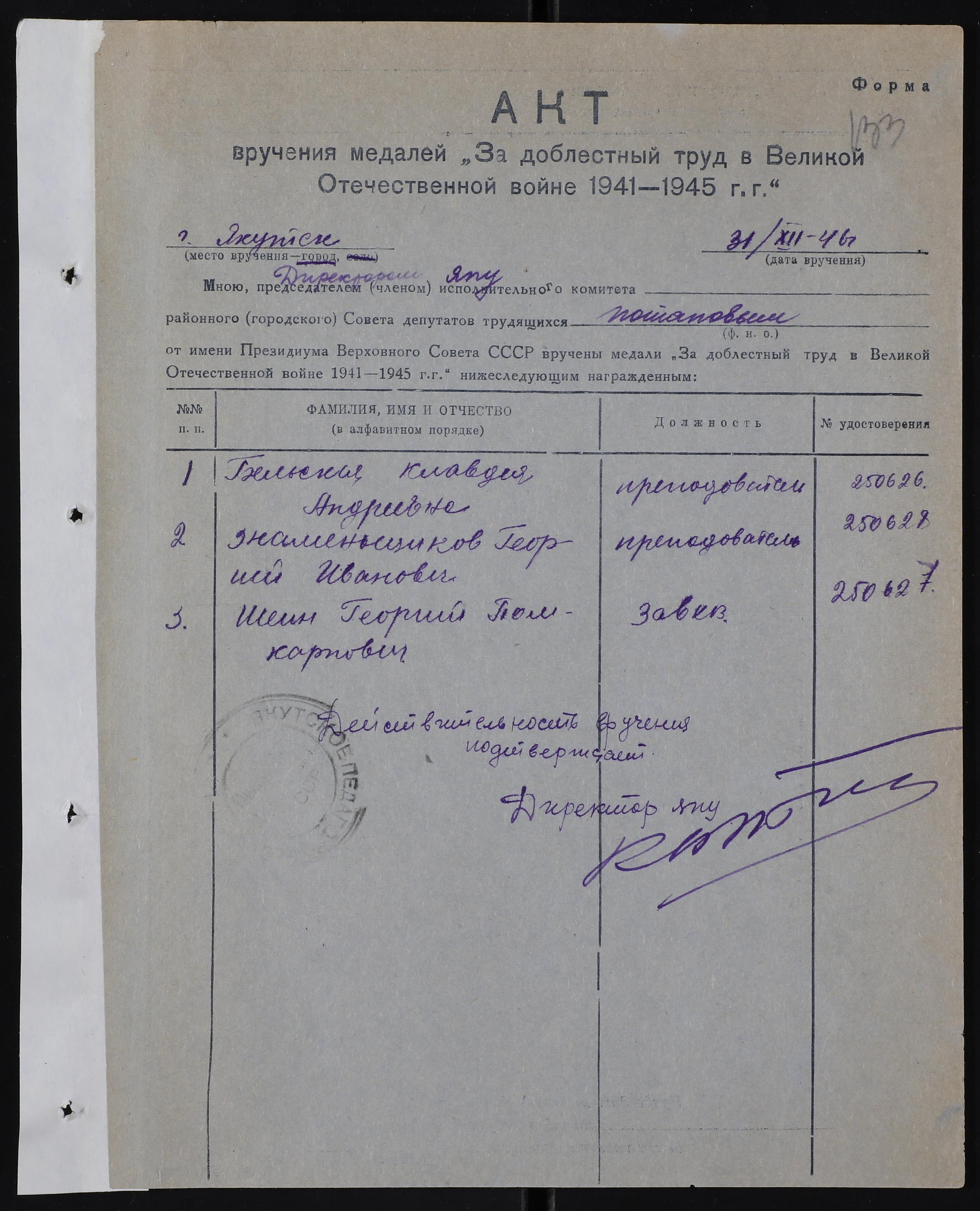 Источник: Национальный архив РС (Я). Ф.50. Оп.60. Д.71. Л.133