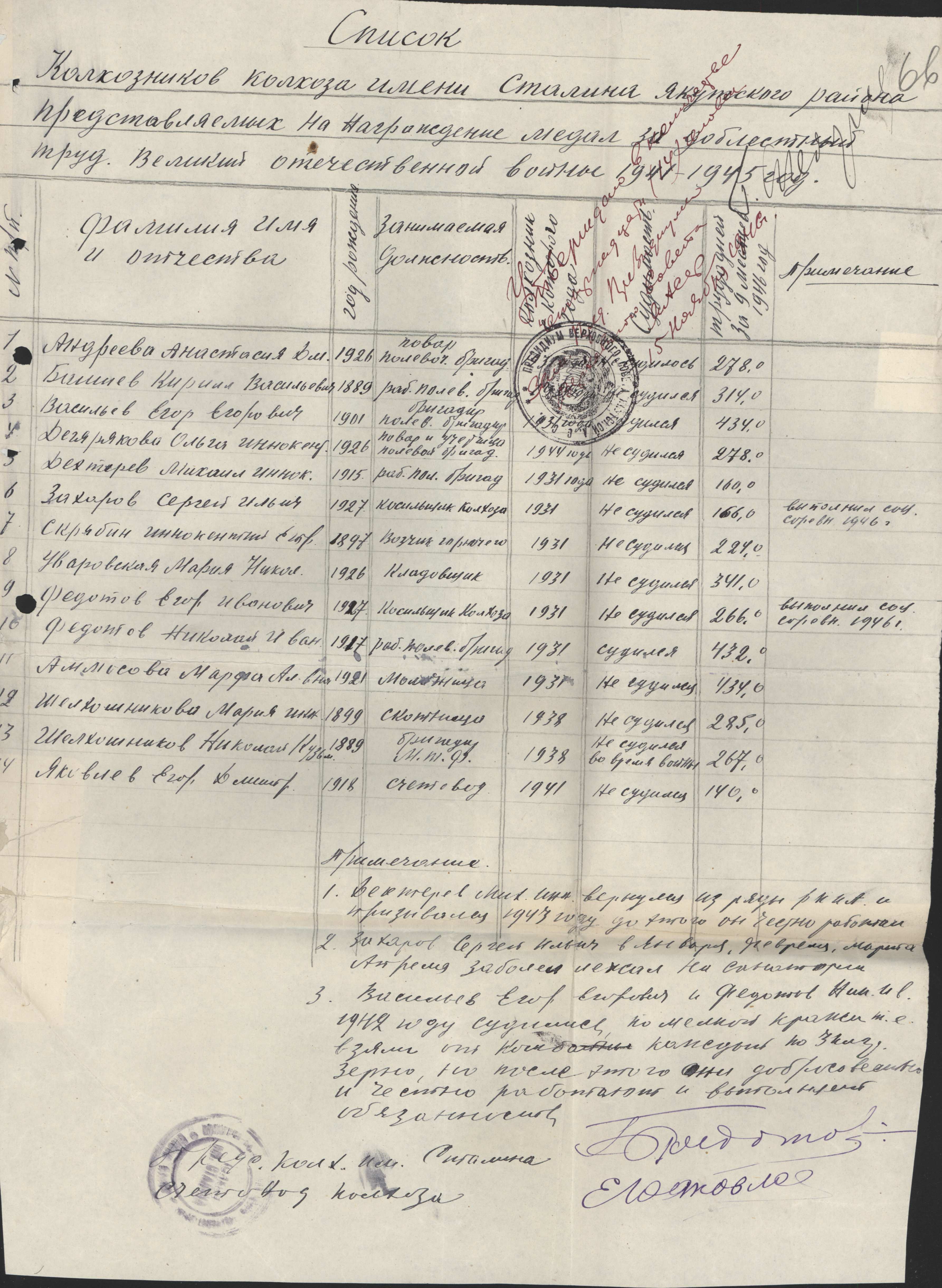 Место работы: Колхоз им. Сталина Т-Кильдямского с/совета