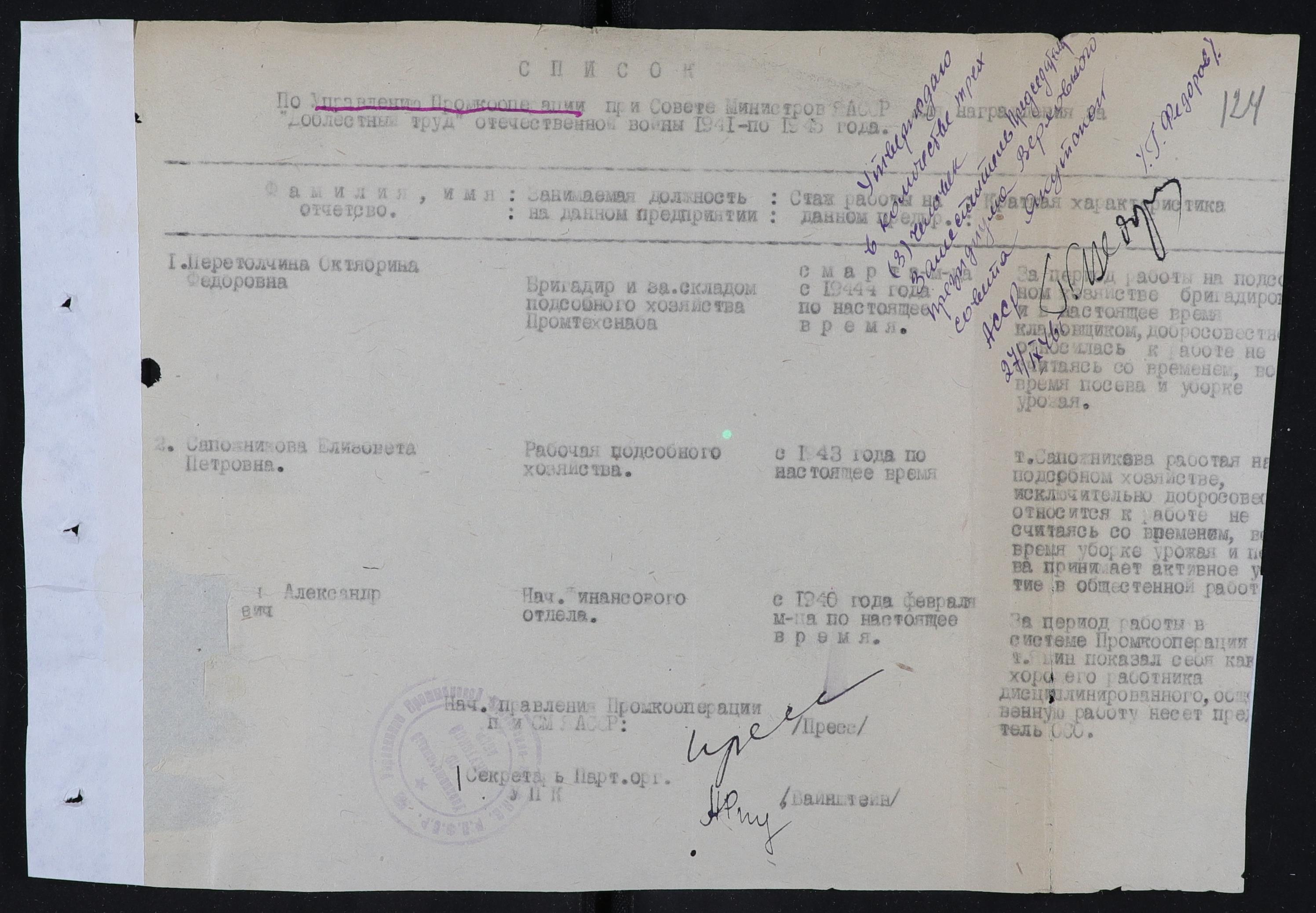 Источник: Национальный архив РС (Я). Ф.50. Оп.60. Д.75. Л. 124